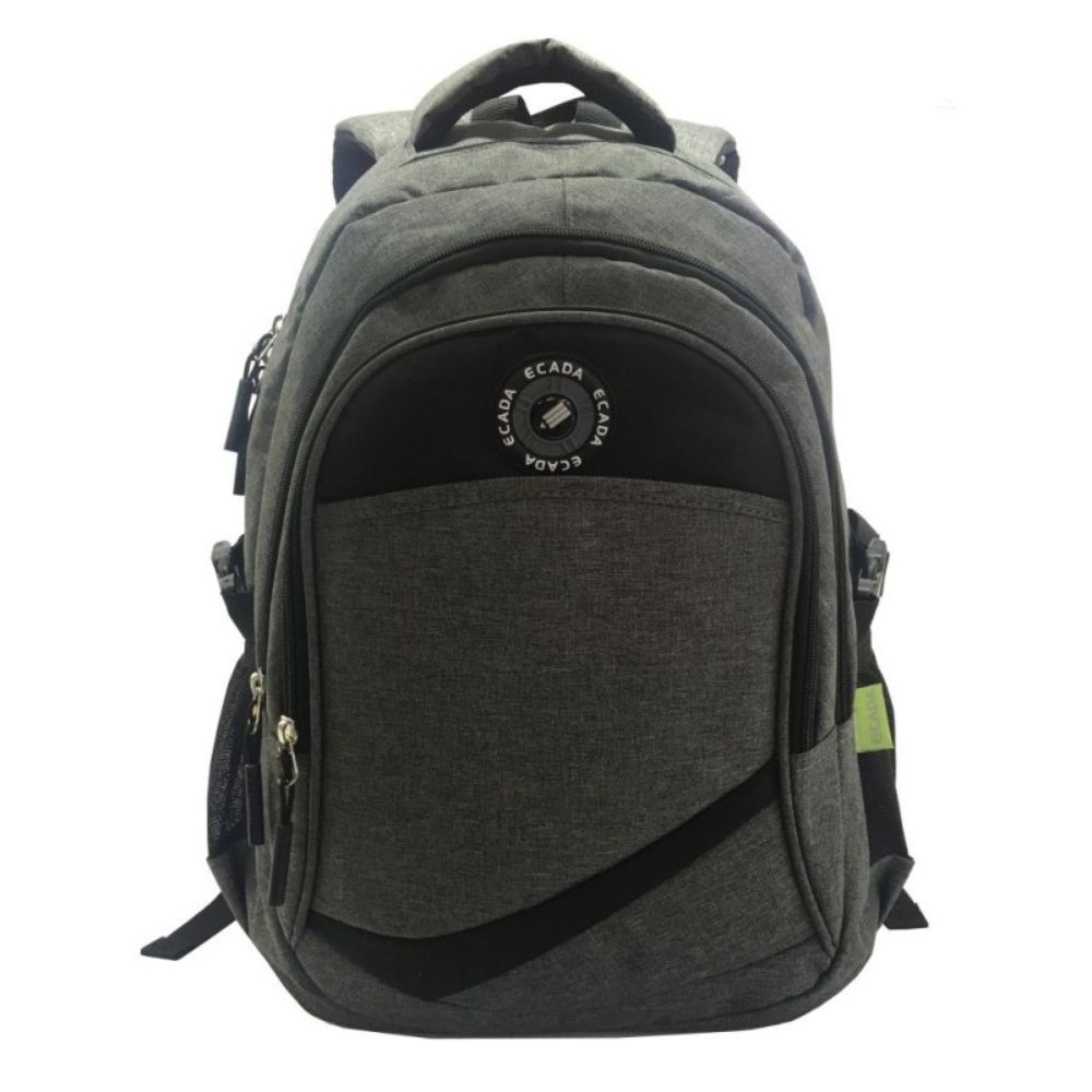 Ghiozdan Scolar Ecada, Dimensiune 45 cm, Bretele cu Burete Reglabile si Trei Fermoare, Material Poliester, Culoare Gri